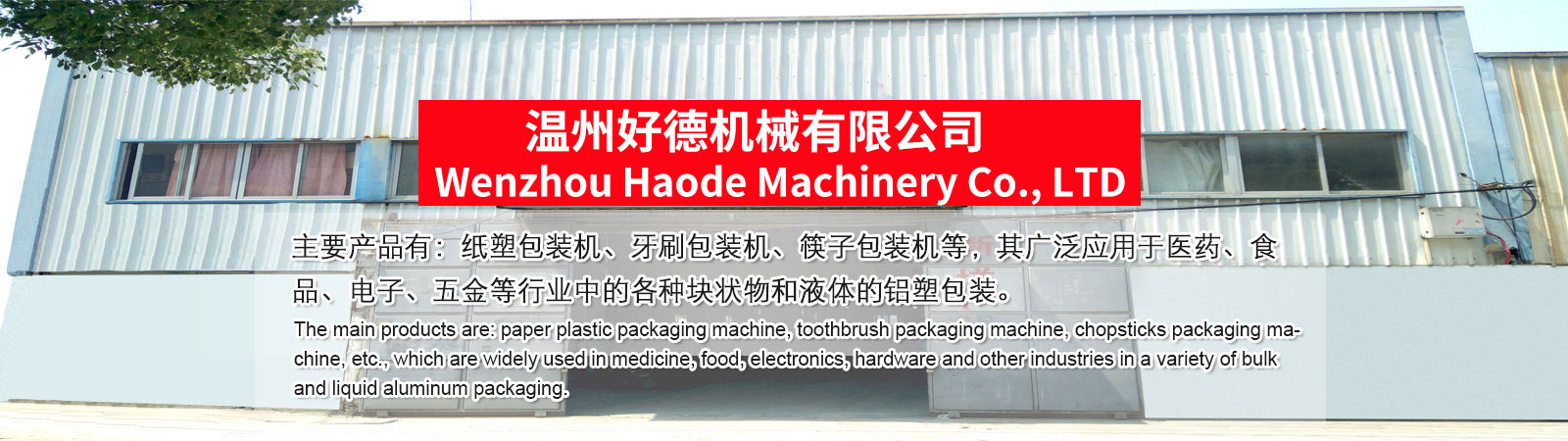 溫州好德機(jī)械有限公司(原瑞安市金德機(jī)械有限公司)位于祖國的東海之濱,美麗的飛云江畔——瑞安。 瑞安素有“東南小鄒魯”的美譽(yù),是中國著名的包裝機(jī)械、制藥機(jī)械、包裝機(jī)械及食品機(jī)械的科研研發(fā)、生產(chǎn)制造、銷售服務(wù)于一體的全方位、多功能科技企業(yè)。